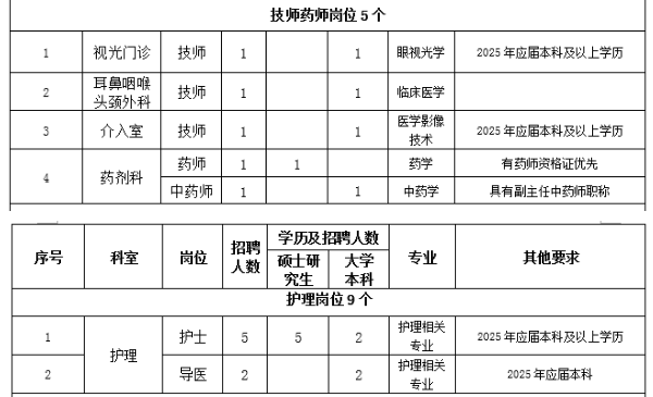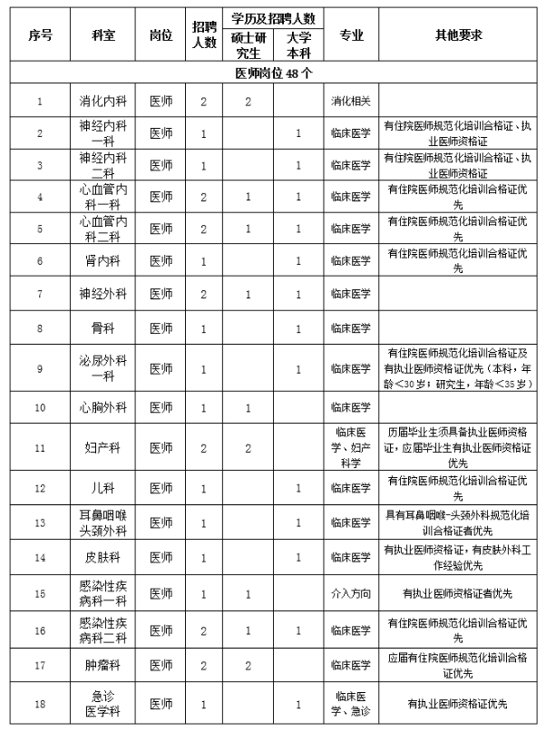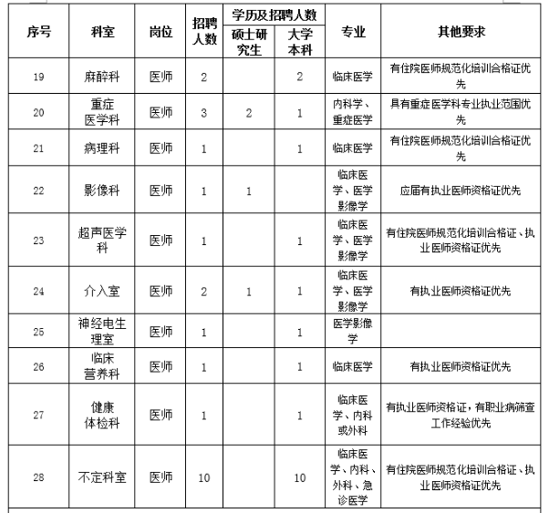 1.思想政治素質(zhì)好,擁護(hù)黨的路線(xiàn)、方針、政策。2.遵紀(jì)守法,醫(yī)德品行良好,有較強(qiáng)的事業(yè)心、責(zé)任心和進(jìn)取心。3.身體健康,能滿(mǎn)足應(yīng)聘崗位需要。4.具備相應(yīng)的學(xué)歷和學(xué)位,有履行應(yīng)聘崗位職責(zé)的專(zhuān)業(yè)能力、技能條件。5.具有團(tuán)隊(duì)精神,有良好的溝通能力。6.具備應(yīng)聘崗位所需要的其他條件。7.服從單位安排。