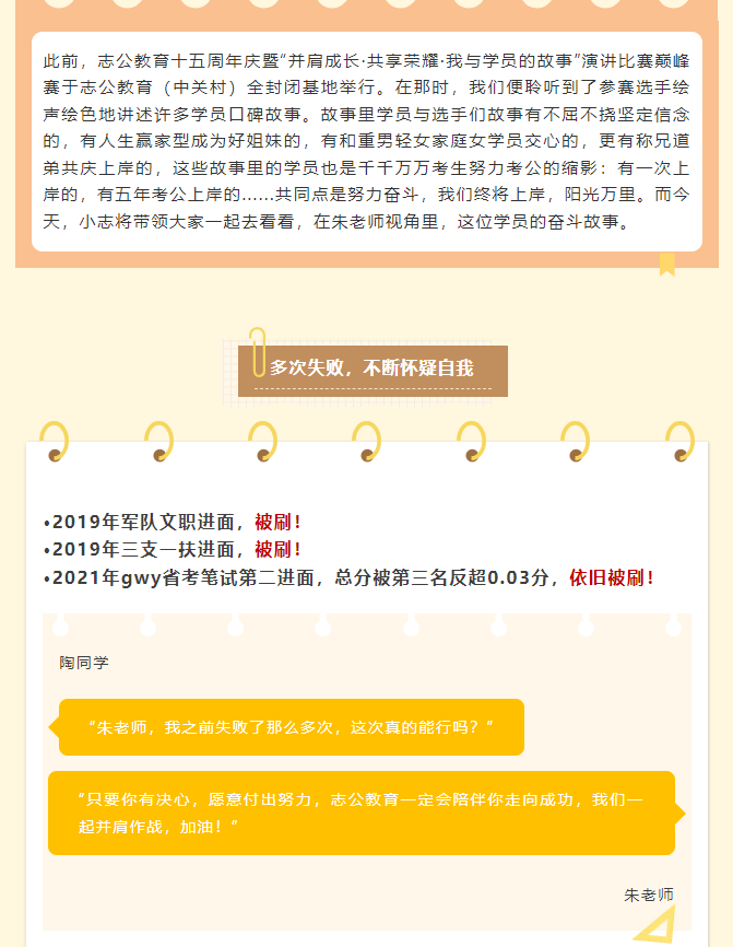 這個(gè)學(xué)員從大學(xué)本科畢業(yè)開始,就踏上了一條充滿挑戰(zhàn)的道路。他一心想要考上選調(diào)生,這一路走來,竟也花了整整五年時(shí)間。在這五年里,他始終堅(jiān)定執(zhí)著,從未放棄過自己的夢(mèng)想。
