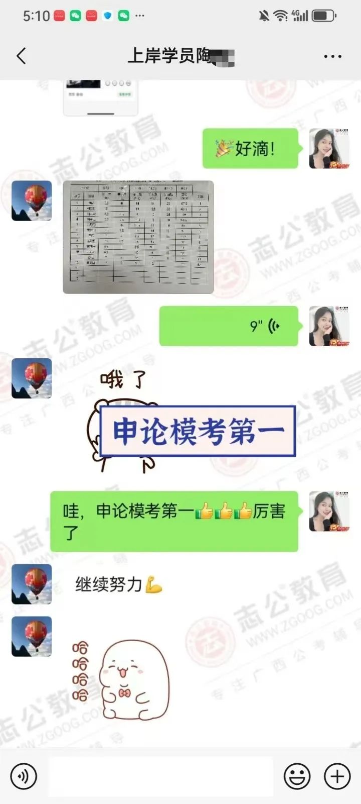 申論模考中榮獲了第一名,這是他努力學(xué)習(xí)的最好證明!我對(duì)他說:“天道酬勤,你不上岸誰(shuí)上岸!”