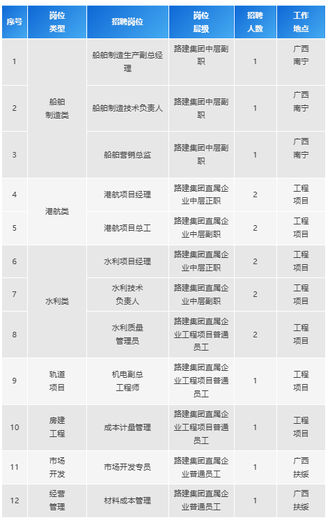 根據廣西路建集團發(fā)展需要,現面向社會(huì )公開(kāi)招聘關(guān)鍵崗位人才,誠邀有志之士與廣西路建集團共創(chuàng )美好未來(lái)。