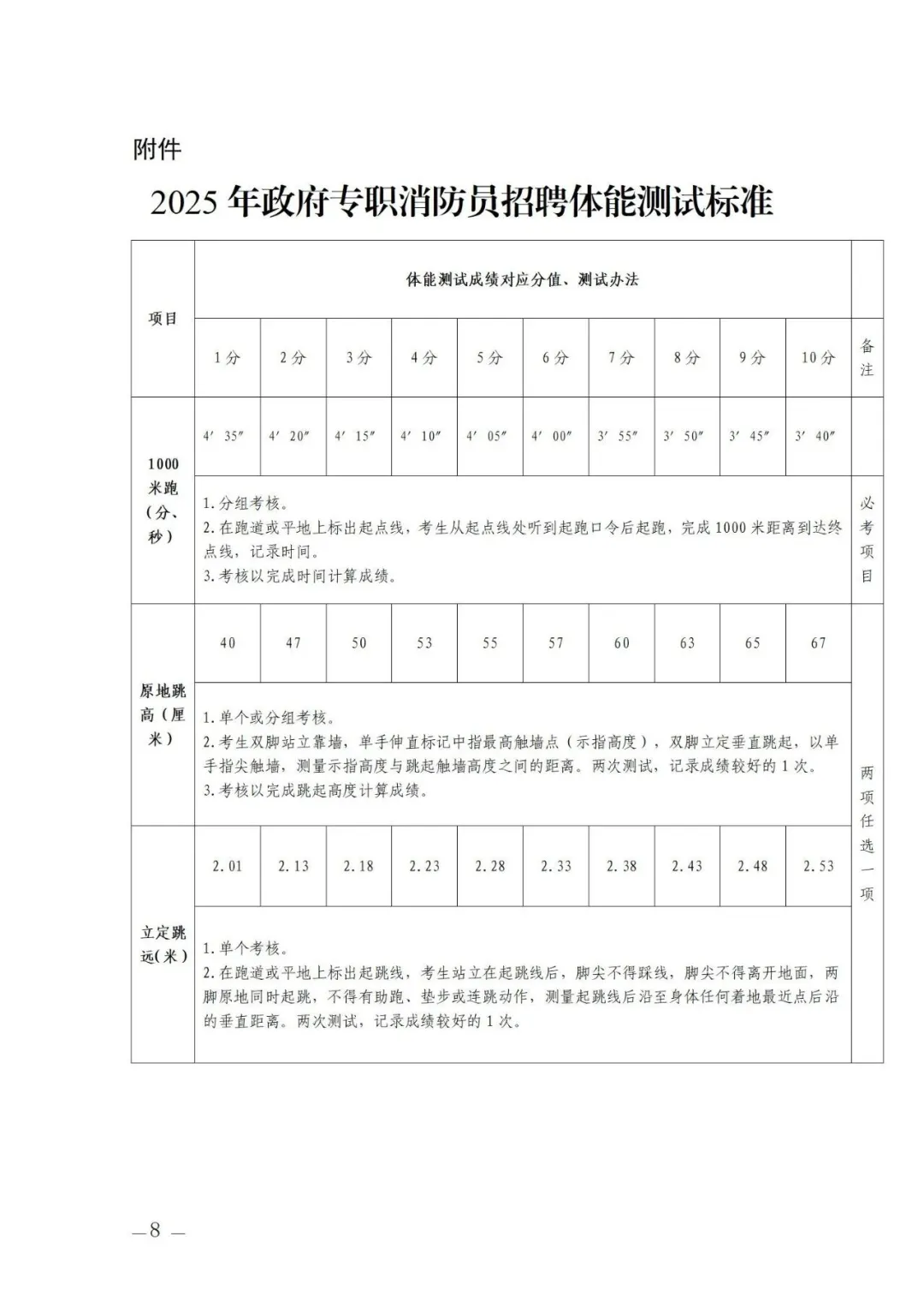 注意事項:應聘人員須參加體能測試,并當場(chǎng)簽訂《天等縣消防救援大隊政府專(zhuān)職消防員招聘體能和崗位適應性測試招聘對象承諾書(shū)》,體能測試有兩項及兩項以上不得分的視為不合格(標準參照附件)。未按時(shí)參加或因身體原因無(wú)法測試者,視為自動(dòng)放棄。