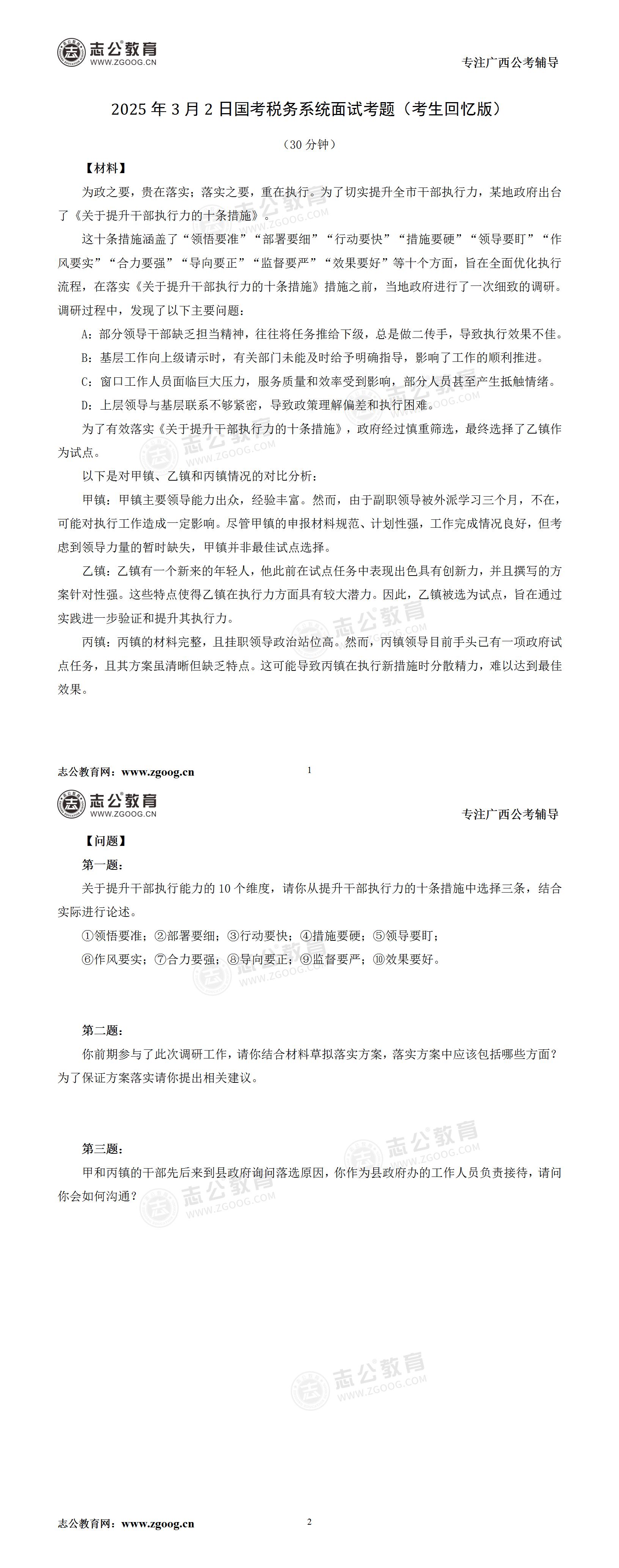 2025年國考稅務(wù)系統3月2日面試考題(考生回憶版)