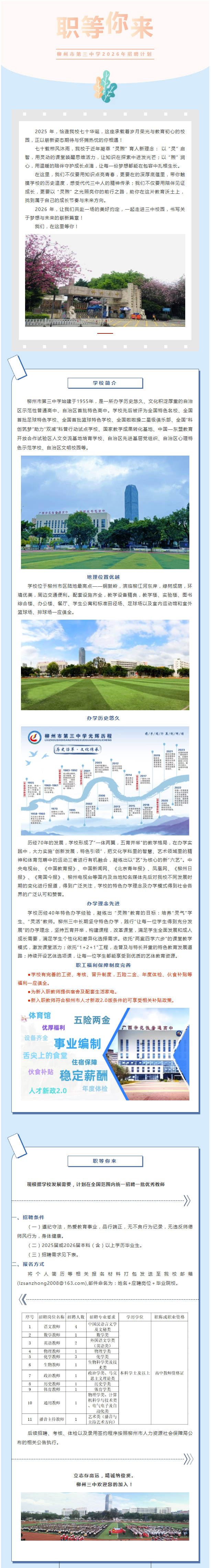 原文標題:柳州市第三中學(xué)2026年招聘計劃