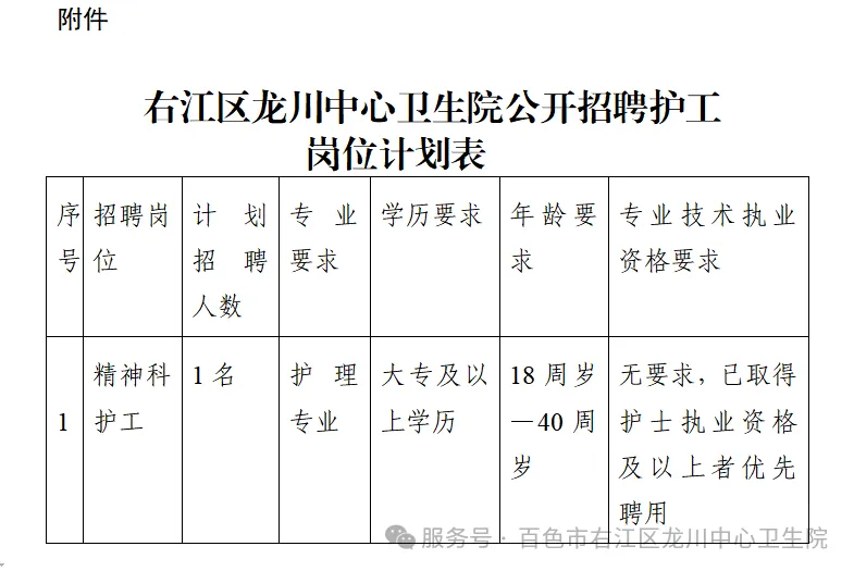 附件:右江區龍川中心衛生院公開(kāi)招聘護工崗位計劃表