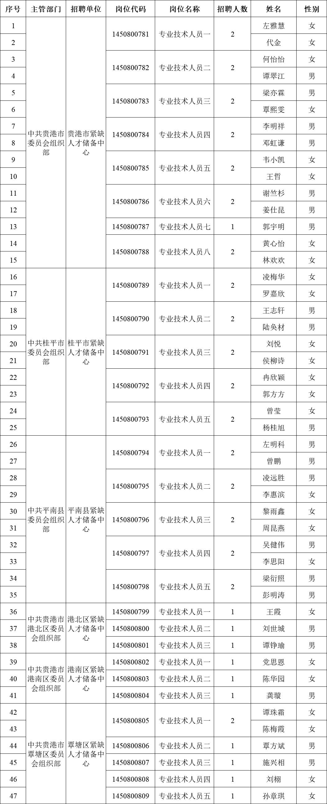 2025年貴港市引進(jìn)重點(diǎn)領(lǐng)域重點(diǎn)產(chǎn)業(yè)急需緊缺(高層次)人才進(jìn)入考察人員名單公告