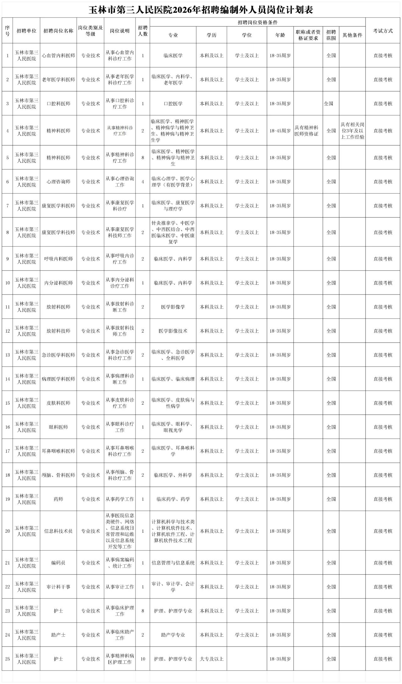 2026年玉林市第三人民醫院公開(kāi)招聘編制外人員公告