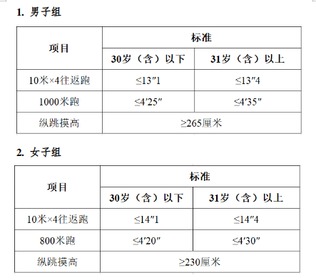 備注:年齡計算時(shí)間截止到參加體能測評當月。