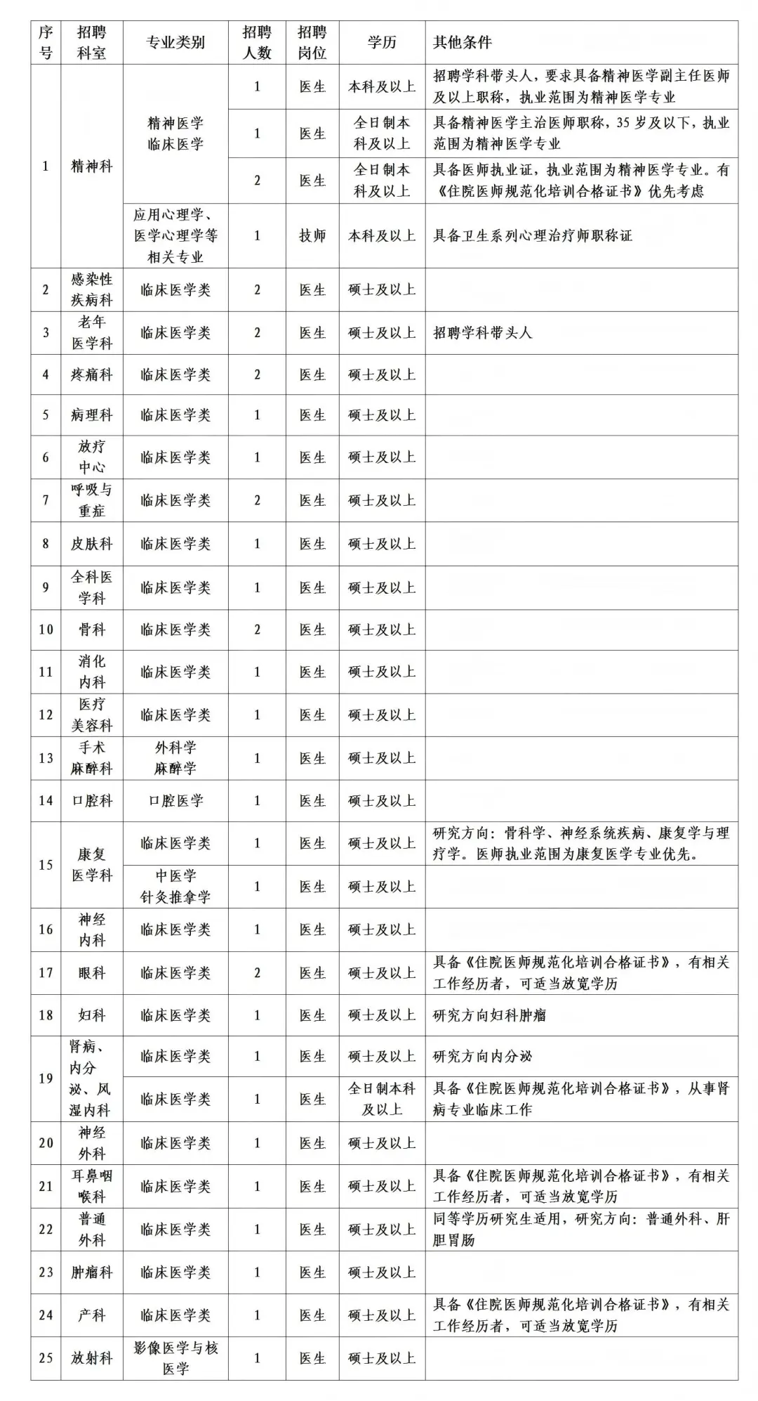臨床醫學(xué)領(lǐng)域日新月異,學(xué)科帶頭人的學(xué)術(shù)水平與創(chuàng )新能力直接決定學(xué)科高度。為了給學(xué)科發(fā)展注入新鮮血液,提升核心競爭力。我院長(cháng)期動(dòng)態(tài)招聘各學(xué)科帶頭人、高級職稱(chēng)臨床醫師、臨床醫學(xué)類(lèi)全日制碩士研究生及以上學(xué)歷人員(作為學(xué)科帶頭人的培養對象,納入單位人才儲備庫)。具體待遇按《河池市金城江區醫療衛生高層次和急需緊缺專(zhuān)業(yè)人才激勵暫行辦法》執行。