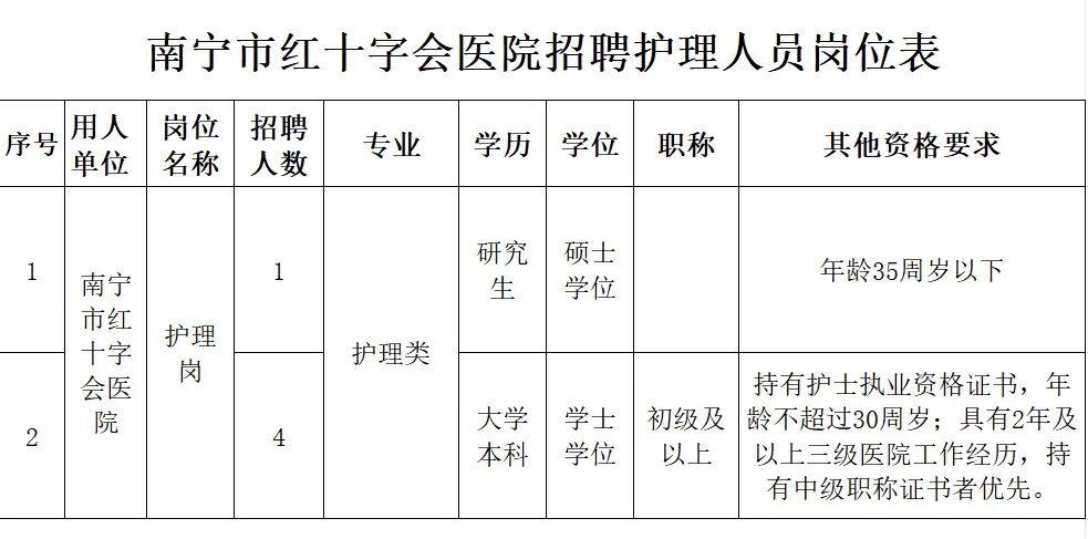 原文標題:2025年南寧市紅十字會醫(yī)院招聘護理人員